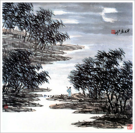 月夜访友图