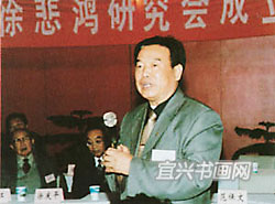 2001年成立江苏省徐悲鸿研究会任会长,在成立大会上致词 |