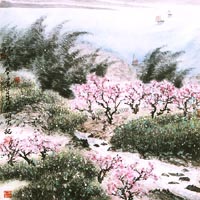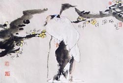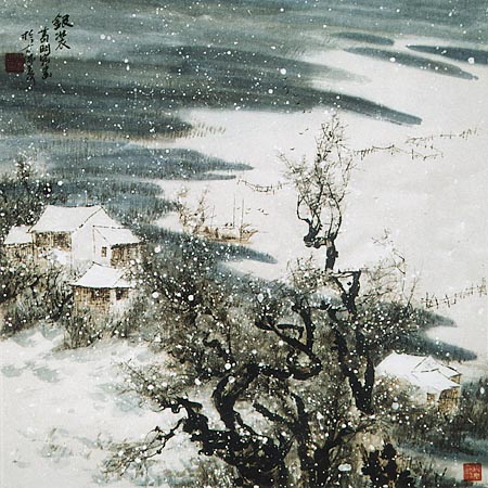 几组简洁意象——春花、秋水、风絮、雪蕴。葛明宏以逸笔洒脱的方式,以适度均衡的的调整,使点、线、墨、色富有一种深沉、飘逸、空灵、流动的韵律之美,实现了开阔的表达。