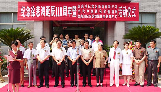 7月19日是徐悲鸿先生诞辰110周年,悲鸿故里——宜兴市举办了一系列的纪念活动。7月16日,“纪念徐悲鸿诞辰110周年暨徐悲鸿纪念馆修缮重新开馆、当代中国画名家邀请展、徐悲鸿纪念馆馆藏作品集首发式活动仪式”在宜兴徐悲鸿纪念馆隆重举行,将宜兴市的纪念活动推向了高潮。 |
