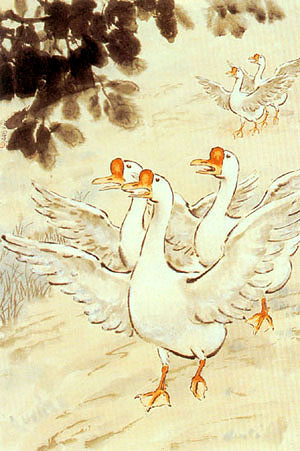 故乡鹅群迎客来 |