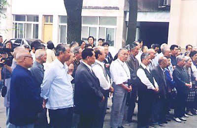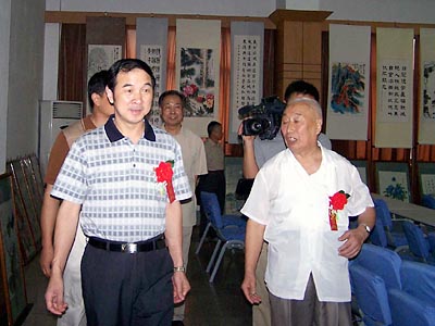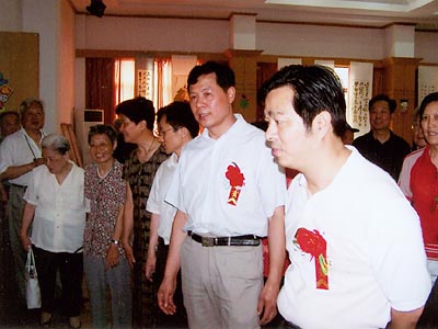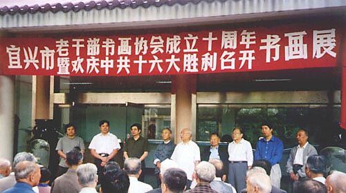 2002年9月25日,宜兴市老干部书画协会成立10周年作品展在宜兴市老干部活动中心展出,市委副书记、市政协主席吴国成(左3),市老干部局局长吴祖良(左2),以及市关工委、宜兴书画院、宜兴美术馆等有关部门负责同志参加了开幕式。 |