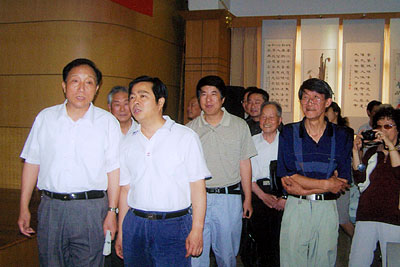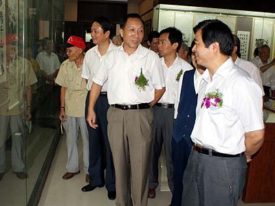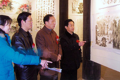 市委常委、宣传部长许伟英(右1)在高正昌会长、张六弢、刘明等陪同下观看展览。 |