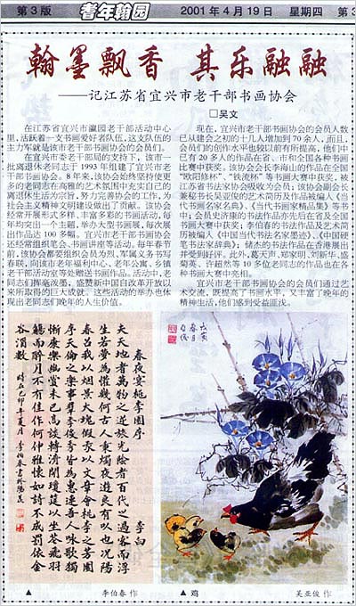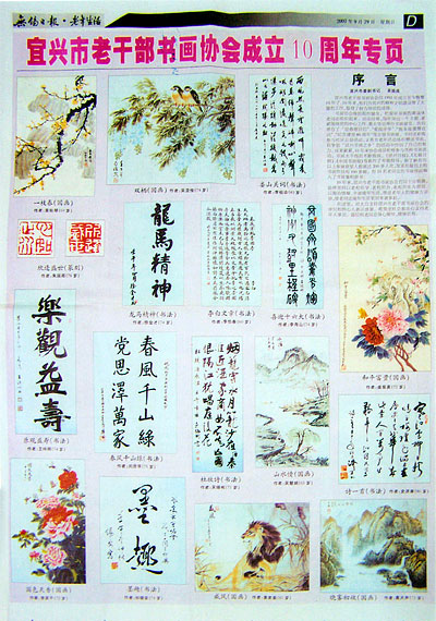 协会成立10周年之际,《无锡日报》老年生活版免费为本会出版一期书画专版 |