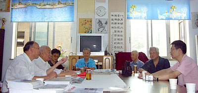 2007年9月21日,中央电视台中国画栏目主编杨晓敏(右)一行来协会采访。 |