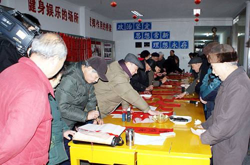 2010年2月3日,协会书法组14位会员在活动中心大厅为革命老干部和居民群众书写春联。