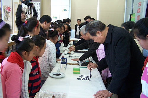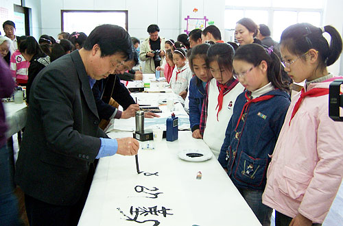 2010年4月27日下午,为迎接上海世博会即将开幕,协会一行10人由单主任带队,与荆溪小学小书画家们一起举行以“书悠然墨香,迎精彩世博”为主题的老少同台书画笔会。
