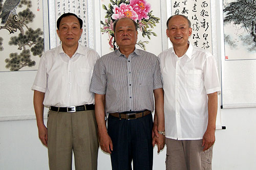市人大副主任张伯宏来协会看望并参观协会书画展。图为张伯宏(中)与协会会长高正昌(左)、协会常务副会长吴俊芳(右)合影。