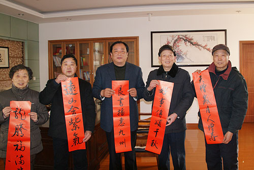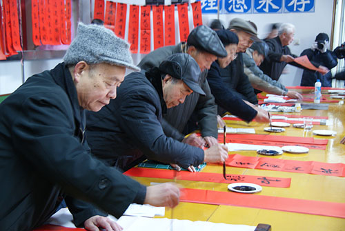 为迎接龙年春节,1月6日,协会在老干部活动中心举行写春联活动,赠送我市老干部和部份市民。协会书法组10多位老同志一字排开,现场挥毫泼墨,将一幅幅春联送到老干部和居民手中,受到了热烈欢迎。而后又分赴袁桥社区、新华社区开展写春联活动。这次活动共书写春联500多幅。