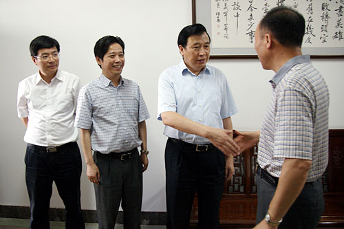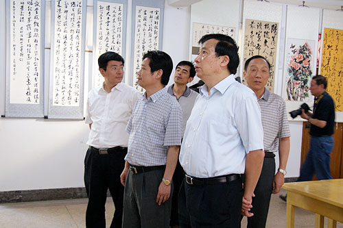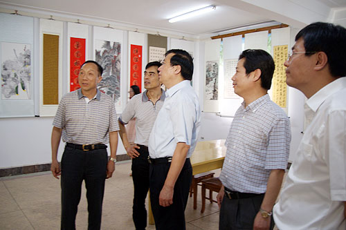 7月11日,市委书记王中苏,副书记周中平,市委常委、组织部部长崔荣国,组织部副部长、老干部局局长王旻明及有关领导,来协会慰问高正昌会长。王书记一行还参观了协会展厅展出的会员迎七一部分书画作品,王书记对展出作品给予高度评价,并鼓励协会工作更上一层楼。 |