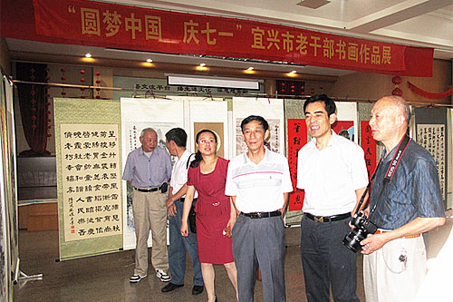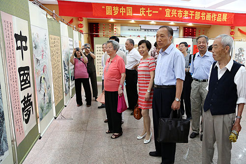 6月25日,宜兴市老干部书画协会在市老干部活动中心二楼大厅举办“圆梦中国庆七一”书画展。市委组织部付部长、市委老干部局王旻明局长、王延莉副局长、我会高正昌会长及全体会员80多人观看了展览。这次展出书画刻纸等作品93幅,小品32幅,共125幅。作品为广大会员认真构思、精心创作而成,紧扣中国梦和讴歌党的主题,传递正能量,给人以精神上的鼓舞。许多离退休老干部参观后,纷纷称赞是精神文化的美餐,非常难得。展览还吸引了许多媒体记者。 |