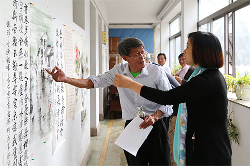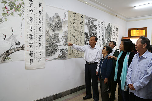 金秋十月,丹桂飘香,10月19日下午,协会全体会员齐聚一堂,欢度重阳佳节,庆祝老干部书画协会第四届重阳书画展隆重举行。展览共展出书画作品50件,其中书法26件,国画24件。展览主题鮮明,尺幅大,创作厧量高,凝聚了全体会员的辛勤汗水,表达了节日的愉悦心情。参观展览后,全体会员举行庆重阳座谈会,92岁高岑的离休干部潘浩史首先发言,而后书法分会会长李伯春,会员吴顺中、沈志奎、朱斌培、任韞等先后发言。活动中心刘君主任也讲了话。最后高正昌会长作了总结讲话,他首先向大家致以节日问候,并祝贺展览成功举办,接着就老年养生、协会工作、书画创作、服务社会等方面作了深入浅出的发言。整个活动开展得十分成功。 |