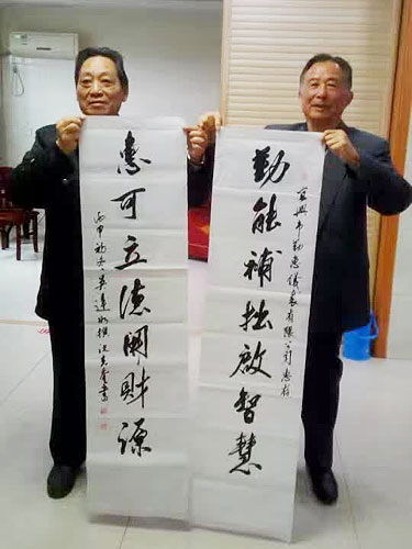 11月18日,我会高正昌会长与创研中心一行20人,赴徐舍镇鲸塘社区宜兴市勤恵仪表有限公司开展书画联谊活动。创研中心主任许君如主持活动,周国俊等8名会员泼墨挥毫,现场创作。公司老总提出要写一幅对联,会员吴达如自告奋勇当场撰联,会员沈志奎当场书写“勤能補拙启智慧、恵可立德开财源”,秦总喜出望外地接受了这付盈联。连同带去的作品共计28幅书画赠送给公司,并与老总合影留念。鲸塘是有名的历史古镇,大家绕有兴趣地参观了鲸塘桥和青白村马氏旧宅。活动受到公司的热烈欢迎和热情接待。 |