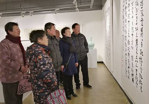 2月15日上午,我会一行约30人,由高会长领队,来到城北的菡美术馆参观“辛尘宜兴书画邀请展”。