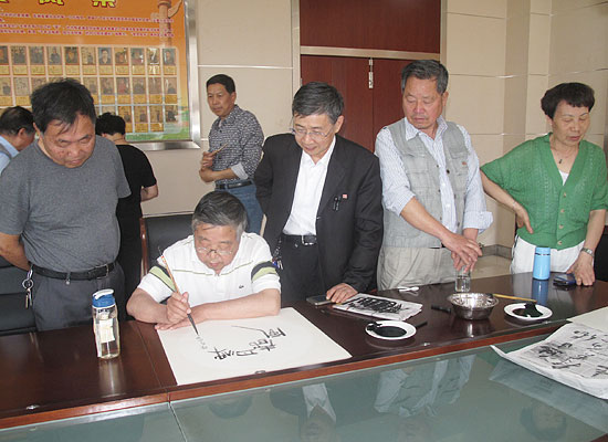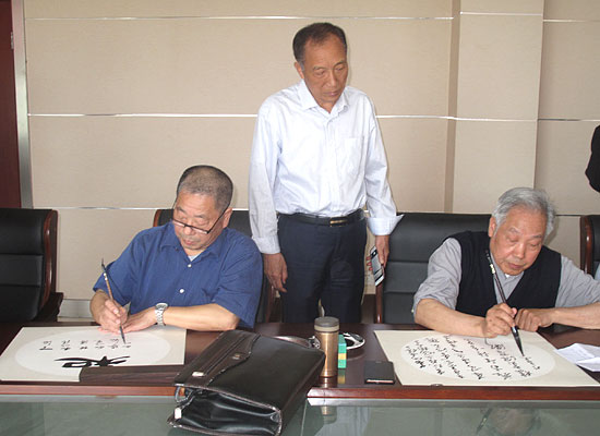 5月18日,我会一行22人,高正昌会长带队,来到丁山陶瓷商城创研基地开展创作活动。创研中心主任许君如主持这次活动。书法组李伯春、黃启梁、马皓、吴顺中、孙顺松5人现场书写创作。李伯春用草书写《春山夜月》诗一首。黃启梁用隶书写了一个大大的“和”字,并用行书写了“天得和清,地得和宽,谷得和丰”的布白小字。马皓用篆书写了“秋月春风”四个大字,并用小篆写了《三国演义》开篇词全文。吴顺中、孙顺松用行书写了李白诗《白日依山尽》。书写完成,李伯春、汤鹤龄、卫民生等座谈了创作体会。美术组汤鹤龄、许君如、卫民生、茅唯芬、赵芬宛等创作的6幅团扇画连同5幅书法,共11幅一并赠送绘丁山陶瓷商城。范书记代表陶瓷商城接受了我们的作品,并合影留念。活动受到陶瓷商城范书记的热诚接待。 |