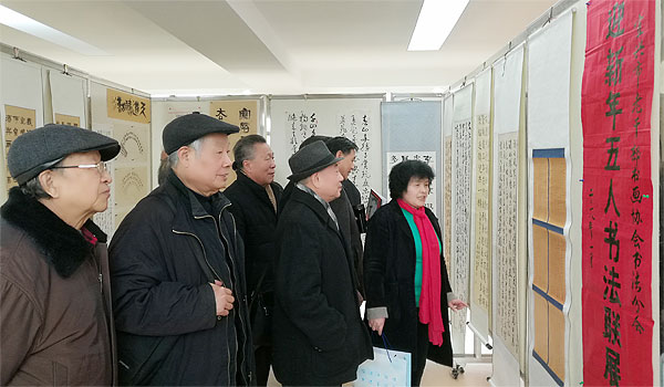 2018年新年伊始,元日2日下午,我会书法分会在协会展厅举办李伯春、马皓、孙顺松、曹耀明、郭杏林书法联展,迎接2018年到来,拉开了新一年协会书画展的序幕。这次共展出55幅作品,给人以艺术和美的享受。分会长李伯春的蝇头小揩,以及奔放秀美的行草中堂、条幅独领风骚;马皓独具一格的秦篆汉隶,条幅,长卷功夫实力非凡;孙顺松的行草书优美潇洒;曹耀明的行草轻盈脱俗;郭杏林的篆刻及大篆盈联厚重古扑。这次展览是分会近年来又一次有较高水平的书法展示。分会近30名会员观看了展览,个个赞誉有加,交流、探讨场面热烈,大家纷纷拍照留念,迟迟不愿离去。展览取得很好效果。 |
