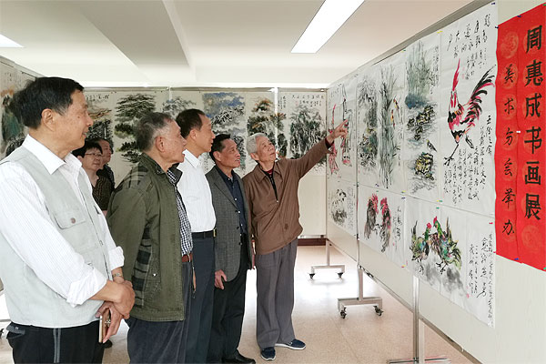 4月11日下午,周惠成个人画展在老干部书画协会展厅举行。63幅作品,将展厅布置得琳琅满目。周惠成是协会很有造诣的老师。长期来,他临池不缀,师古而有创新。他的作品,以大写意挥洒见长,很有特色。山水、花鸟、人物,件件精品,让人耳目一新。而且他长期活跃在社会各个领域,取得了很多成绩,实属不易。 |
