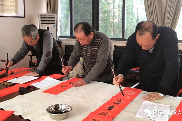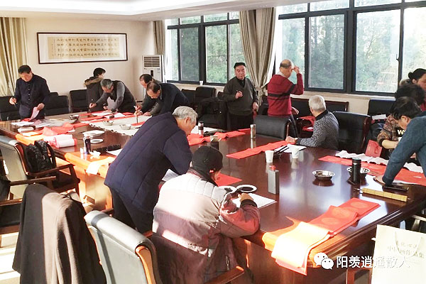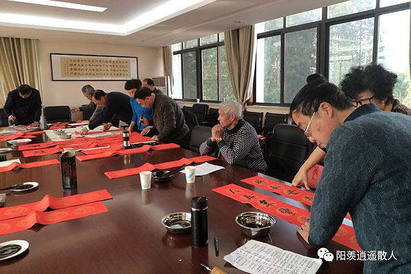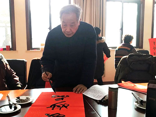 在市老干部春节慰问大会即将召开之际,我会组织会员赶写了一批春联和福字,将在慰问大会期间赠送给与会的全市离退休老干部。 1月18日下午,我会中心组16位老同志在协会会议室挥毫泼墨,不一会儿一幅幅大红春联和福字辅满了会议室。在大家的努力下,一共写了春联200多副和福字100多个,连同原先写好的共380副春联将一并送交会议,向全市老干部送上我会会员们的新春祝福和衷心问候,表达对老干部们的深情厚意。