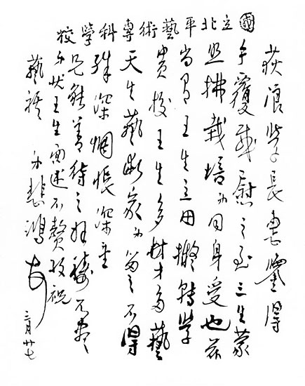 艺术大师徐悲鸿为王农书写的推荐信手迹