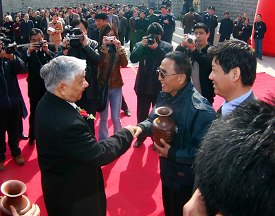 九届全国政协副主席王文元与吴峰枫市长在颁奖大会上
