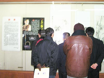飞雪迎春,04年最末一天,正是大雪之后又现晴空丽日的好天气,无锡市迎春花鸟画邀请展今日在宜兴美术馆隆重开幕。无锡地区39位作者的花鸟画作品,姹紫嫣红,一派浓浓春意,集中展示了本地区花鸟画创作的全貌和水平。本次活动的赞助者、著名工艺师葛韬紫砂精品展同时展出。