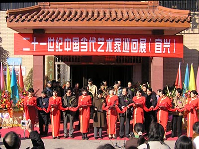 12月18日上午,二十一世纪中国当代艺术家巡回展在宜兴美术馆隆重开幕。宜兴市市长吴峰枫、宜兴市人大副主任杨亚君、宜兴市副市长洪雅,《画刊》杂志社社长、主编李建国,南京艺术学院、南师大美院、中国美术学院、以及来自各地参加此次巡回展的艺术家陈世宁、王浩辉、章文浩、范扬、曹宝泉、刘赦、石果、石丹、张谷旻、张正民,宜兴市和桥镇镇长马才军、宜兴市文化局副局长陈奕、宜兴市文联副主席徐风、宜兴书画院院长吴俊达、宜兴美术馆副馆长蒋逸、宜兴太平洋集装箱配件有限公司董事长何克中,以及宜兴市和桥镇政府、宜兴市民政局、宜兴市教育局、宜兴市公安局、无锡工艺学院、丁蜀职业高级中学、如东县文化局、如东高级中学等单位的领导和来宾、宜兴书画界、新闻界、企业界人士等出席了今天的开幕式。