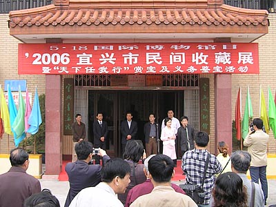 为纪念5.18国际博物馆日,由宜兴市文物管理委员会办公室、宜兴市广播电台交通音乐频道主办的“2006宜兴市民间收藏展”今日开幕