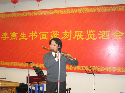 李燕生多才多艺,在展览晚宴上李燕生一曲笛声获得全场喝采。 |