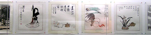张志安教授每年春节都会以新作呈现给观众。今年张老以“茶”为主题举办迎春画展,12月14日起在宜兴徐悲鸿纪念馆展出。这次展出整100幅作品。特别值得一提的是,其中有6本册页,非常精致考究,提请观众多多留意欣赏。 |