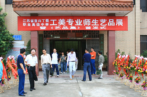 6月2日,为期4天的江苏省宜兴丁蜀职业高级中学工美专业师生艺品展在宜兴美术馆拉开帷幕,共展出该专业师生陶艺作品59件、书画和广告作品109件,并首发《师生艺品集》。市领导邵亚群、许力夫、许伟英、王泽华、洪雅、钱忠道、中国工艺美术大师徐秀棠、江苏省工艺美术大师邱玉林、徐安碧、李守才等到场祝贺并参观展览。 |