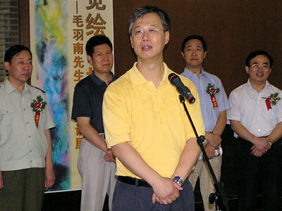 毛羽南先生,现为中国画研究院画家,他是我们江苏走出去的一位艺术家。毛羽南先生执著于绘画艺术,并且不拘泥于中国画创作陈法,以近于痴迷的态度寻找现代水墨创作的新路子。这几年来,他一直在研究“超视觉”绘画,他认为,人对世界的各类感官体验可以用绘画来表达,还将天文学、生物学的一些科研成果结合到艺术创作中。因此,他的绘画具有个性和哲理性,表达了工业社会、信息社会人们对宇宙与生命的思考…… 江苏省文化厅厅长 ——————————————————————————————————————————— |