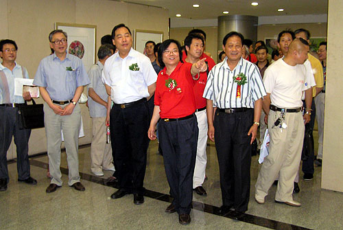 江苏省人大副主任洪锦炘,无锡市委常委、宣传部长王立人,无锡市人大副主任王金大,无锡市人大副主任刘湘根,无锡市文化局长朱建平,无锡市广电局党委书记、局长严克勤,广电局副局长蒋剑雄,锡山区人大主任吴富生,锡山区人大副主任许洪南,102医院院长王云征,无锡市房地产管理局党委书记金荣庆,无锡市书画院院长王洋,无锡市博物馆馆长陈瑞农,常熟市画院院长张夕庚,中大房地产副总经理董魏,宜兴市卡欧电子公司总裁王汉如等出席了开幕式。 |