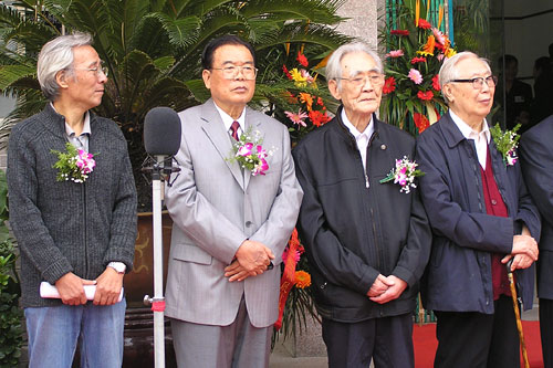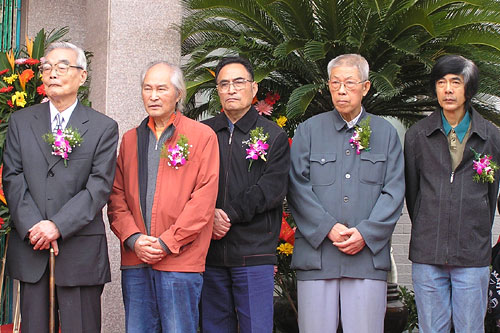 宜兴籍书画名家,左起:丁天缺(中国美术学院教授)、徐永祥(中国美协会员、中国美术学院教授)、周蕴华(中国美协会员、中国剪纸协会常务理事)、张志安(宜兴美协荣誉主席)、尹安石(南京林业大学、南京视觉艺术学院教授) |