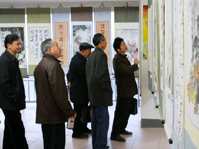 首届会员作品展展出了100多幅书法、绘画及刻纸作品 (宜兴日报社马超摄) |