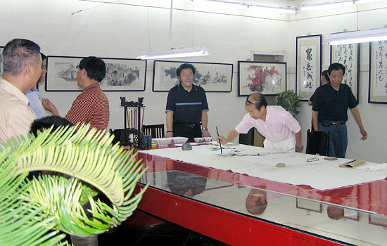 上海书画家吴学才、刘伯华在活动中心内挥毫作画 |