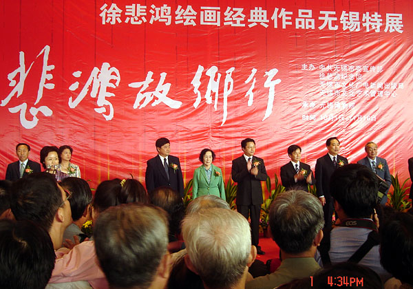 10月1日,“悲鸿故乡行——徐悲鸿绘画经典作品无锡特展”在无锡博物院隆重举行,徐悲鸿夫人、北京徐悲鸿纪念馆馆长廖静文,徐悲鸿之子、中国人民大学徐悲鸿艺术学院院长徐庆平出席开幕式并为画展剪彩。廖静文表示:在家乡举办画展,遂了悲鸿生前的心愿,希望画展能把悲鸿对故乡的感情带回来。 |