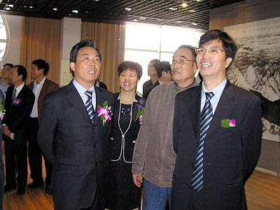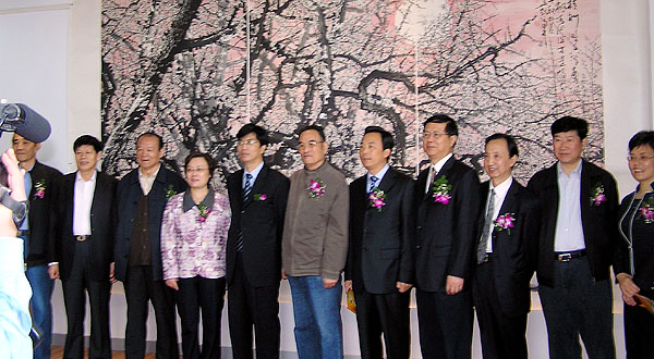 章剑华厅长、宜兴市领导、与会嘉宾参观画展并和周蕴华合影 |