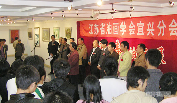 ———————————————————————————————————————— 4月11日续: 江苏省油画学会宜兴分会迎春油画展今天在瀛园文化艺术中心开幕,展出了12名会员20多幅写生创作新作。市文联副主席刘明、市美协主席吴俊达、书协主席张六弢、市文联秘书长吴军、江旭铸造集团董事长罗正良、联合建材董事长周龙、瀛园文化艺术中心主任张柯夫、油画分会会长徐如升、油画分会副会长邵家声、刘建平等出席了开幕式。副市长洪雅今天也专程前来参观了展览。