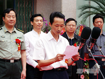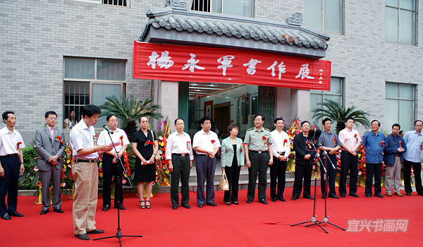 国防大学杨永军教授书法展5月23日上午在宜兴徐悲鸿纪念馆隆重举办。中国人民解放军南京政治学院徐远堂部长、中国人民解放军南京国际关系学院博士生导师程千山、中国人民解放军海军指挥学院政委方军、江苏省文联副主席高以俭、江苏省新闻工作者协会常务副主席李贵梁、中国国家博物馆艺术品开发中心主任陈永德、江苏省人民政府对外联络办公室主任宋锐、宜兴市政协副主席赵菊明、宜兴市明星稀有金属冶炼有限公司董事长许建伟为展览开幕剪彩。各地来宾,20余家媒体,我市书画界、收藏界、企业界等各界人士参加了开幕式。 |