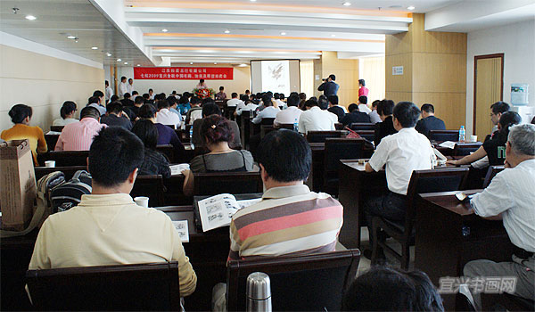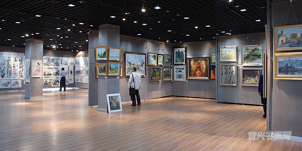 宜兴日报社首次作为东道主,由江苏省拍卖总行在这里举办“七松2009宜兴金秋中国书画、油画及雕塑拍卖会”。314件拍品中,有钱松嵒、谢稚柳、程十发、唐云、秦古柳、徐乐乐、董欣宾、杨明义、刘达江、华士清、梁元等近当代知名书画家的精品力作,国内知名油画家杨松林、俞晓夫、崔开玺、吴云华、丁一林、罗朗、张冬峰、杨参军、刘曼、范勃等、以及10多位乌克兰功勋艺术家的油画精品。上百位买家参加了竞拍,最终有70%的拍品成交,总成交额超过500万元。图为拍卖前的预展现场。 |