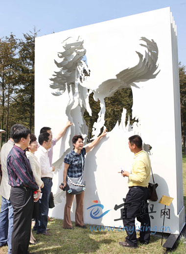 来宾们在参观以徐悲鸿著名国画《奔马》为蓝本创作的作品一洗万古凡马空 |