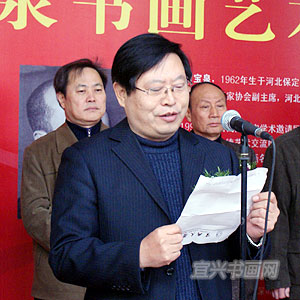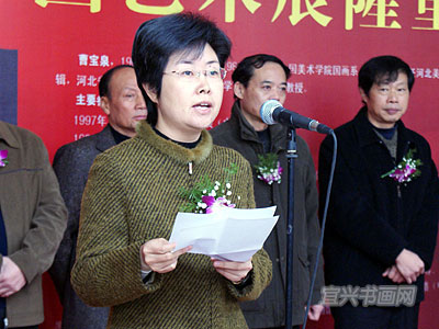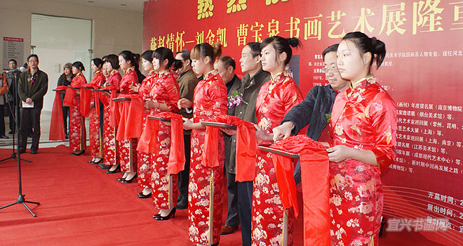 昨天(11月21日)上午,“燕赵情怀——刘金凯 曹宝泉书画艺术展”在宜兴日报书画院隆重开幕。出席开幕式的有:原武警特警指挥学院院长王荣周,中国书法家协会刻字委员会副主任王志安,无锡市文联主席雷群虎,无锡市文化艺术管理中心主任刘川,无锡市文联副主席、无锡市书协主席王建源,无锡市书协副主席、秘书长孙璘,宜兴市政府副市长洪雅,宜兴市文联主席徐风,以及无锡、宜兴的书画界、企业界人士等。宜兴日报总编程伟主持仪式。 |
