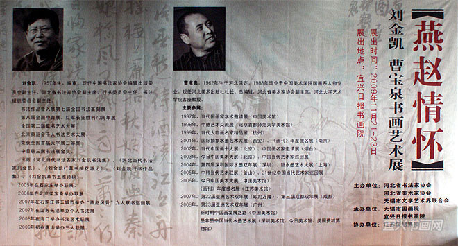 展 讯燕赵情怀——刘金凯 曹宝泉书画艺术展11月21日(星期六)上午10时举行开幕仪式 主办单位:河北省书法家协会