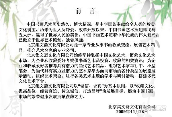 展 讯北京集文斋2009书画作品展兹定于2009年11月28日(星期六)上午10:00开幕展出 主办:北京集文斋文化有限公司