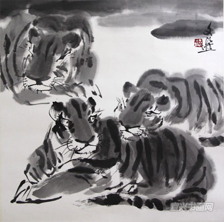 汤文选《三虎图》 68.5x70cm |