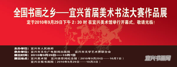定于2010年9月29日下午 2:30 时 在宜兴美术馆举行开幕式,敬请光临!