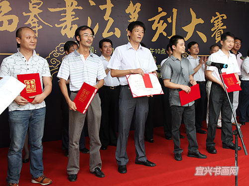 8月31日上午,宜兴市首届临摹书法篆刻大赛优秀作品展暨颁奖仪式在宜兴日报书画院举行。市领导董平、许伟英、路晓报、洪雅、莫克明出席活动并为获奖者颁奖。 |