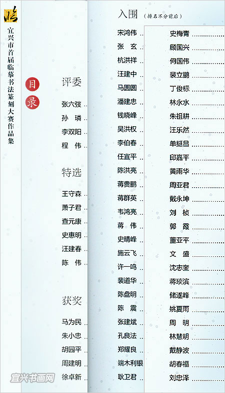《宜兴市首届临摹书法篆刻大赛作品集》目录 —————————————————————————————— |