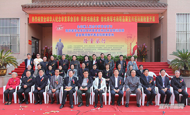 11月12日上午,全球华人纪念辛亥革命百年两岸书画名家部长将军书画精品展宜兴巡回展在宜兴美术馆隆重举行。此展由中国书画家联谊会、世界华人联合会总会、中外交流书画院、台湾中华新世代艺术文化交流协会主办,宜兴市润雅轩书画院承办。 |
