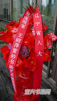 辽宁省人大、中国书法家协会刻字研究会、辽宁省书法家协会、辽宁省书法家协会篆刻委员会、辽宁省工艺美术行业协会、辽宁省沈阳民航传媒董事会、清华大学美术学院王志安工作室、江苏省无锡市国画院、山东省莱芜邦和美术馆为展览赠送花篮。 |
